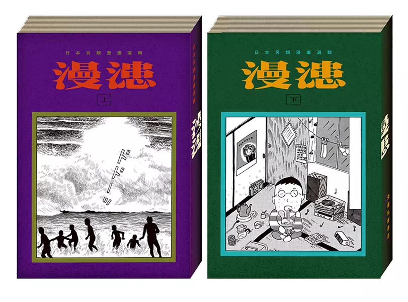 //還不認識Mangasick但對於前衛漫畫感興趣的人到底存不存在,我其實有點好奇。這間基地於公館的漫畫書店,可以說是近年功德無量的前衛日漫推廣者。雖說他們出版的《漫漶》在小小賣到已經補過兩次貨,但迄今我都還沒有正式介紹過它。然而,如果你對丸尾末廣、柘植義春、花輪和一這些名字不陌生,或者喜愛逆柱意味裂、安部慎一、小松真也的讀者,想來,錯過《漫漶》是滿可惜的。